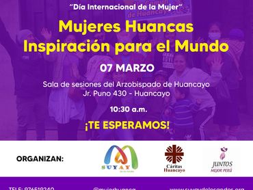 Con motivo de celebrarse el Día Internacional de la Mujer, el pasado 08 de marzo, se desarrolló el Seminario "Mujeres Huancas Inspiración para el Mundo", que contó con la participación de mujeres huancainas exitosas quienes compartieron sus experiencias, asimismo se desarrolló el taller motivacional “𝐄𝐬𝐜𝐮𝐜𝐡𝐚 𝐭𝐮 𝐯𝐨𝐳 𝐢𝐧𝐭𝐞𝐫𝐢𝐨𝐫”, que estuvo dirigido por la Coach de Vida y emprendedora de éxito, Diana Guerra Yaranga. El evento contó con una nutrida presencia de mujeres de todas las edades, quienes finalmente participaron en el sorteo de numerosos regalos por el día internacional de la mujer.